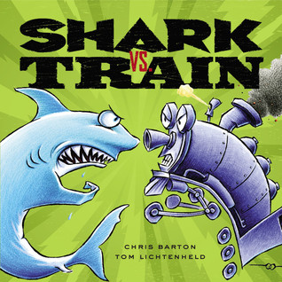 Who will win? Shark? Or Train? Well, it really depends on the scenario. I mean, swimming is kind of a no-brainer, and when it comes to carnival rides, Train has an obvious advantage. But what about selling lemonade? Or roasting marshmallows? This book is hilarious. I love it.