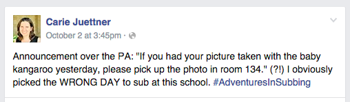 Hi Ashley’s sister! Yes, I find it’s fun to share subbing and teaching stories, especially with people who have never worked in schools and don’t know how crazy it can be. Thanks for commenting and for being a sub! 🙂