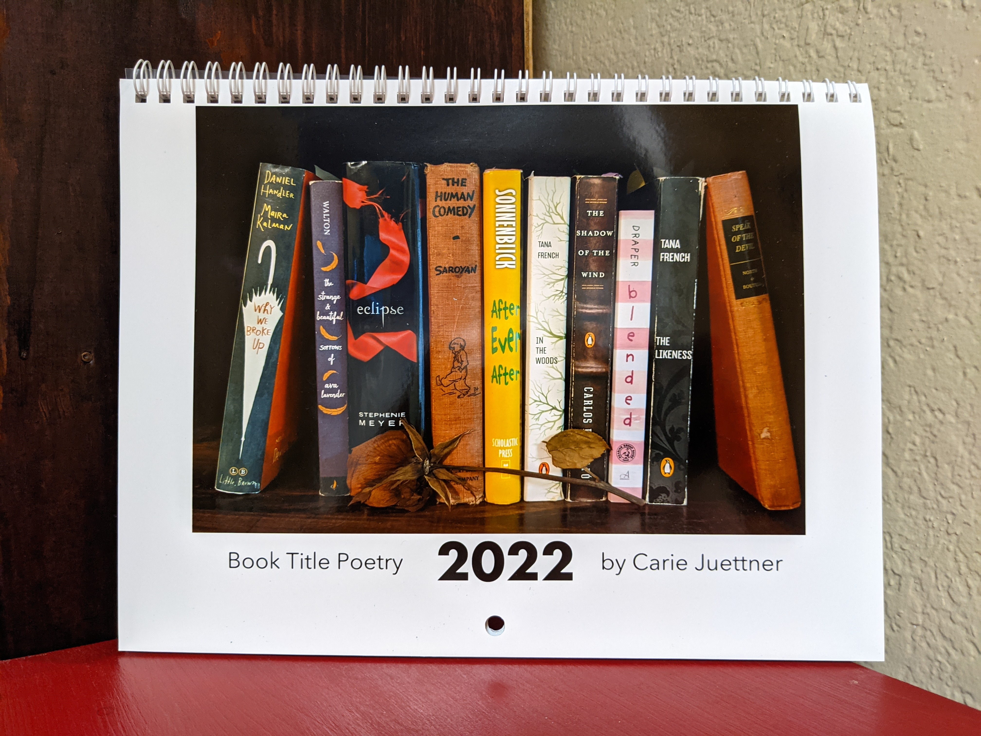 I love making book title poems and have shared several of them here over the years, but this summer I decided to create something more tangible with them. I chose twelve of my favorites and made 2022 calendars.