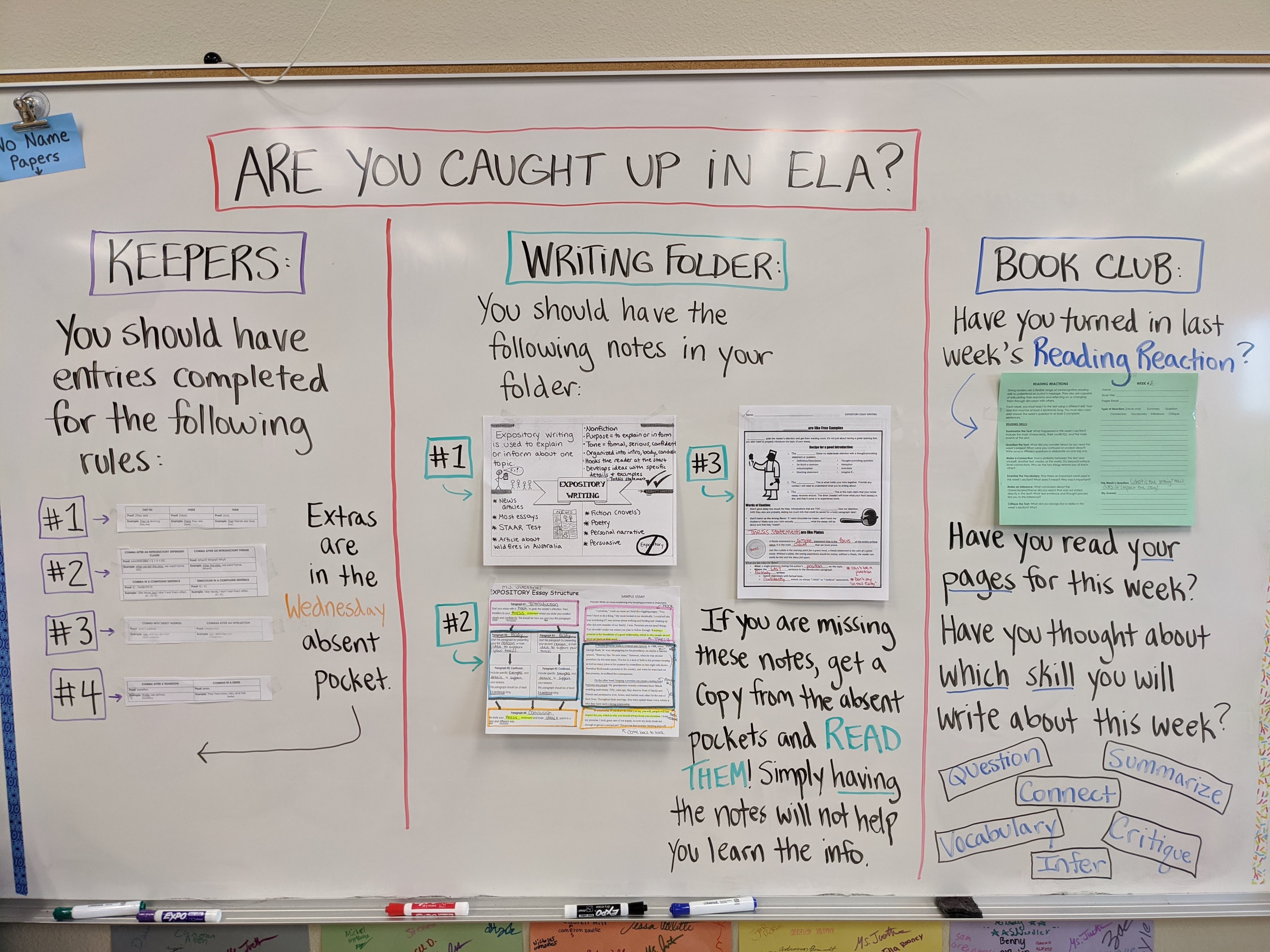 Teachers must have systems in place to keep track of who’s absent, who’s missing work, who’s failing, who’s in the restroom, and who’s allergic to peanuts. They have to differentiate every assessment for each student’s individualized learning plan and keep data on each student’s progress. This takes an organized mind and (for me personally) a lot of different colored pens. (Side note: Teachers love office supplies. If your company wants to up your sticky note game or needs advice on the best brand of marker, hire a former teacher.)