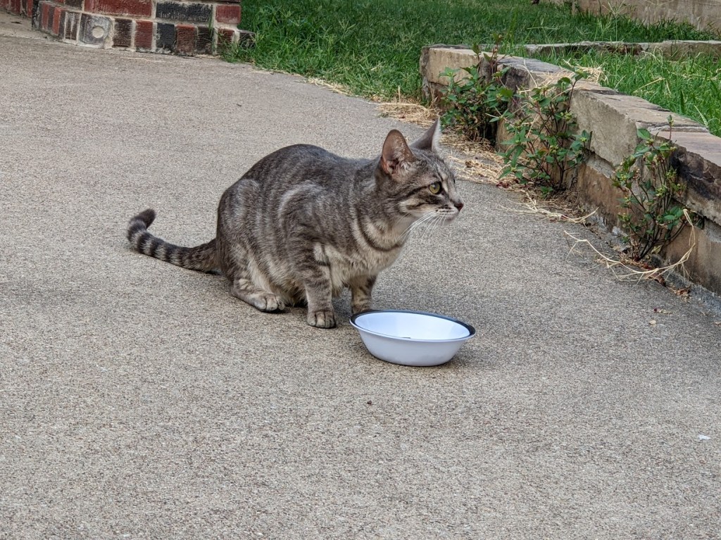 She’s not feral. She allows humans to get close and lingers curiously nearby after eating. With a little patience, it won’t take long for her to trust people. I’m pretty sure, when her babies are old enough, she will want to bring them somewhere safe. I want to be that safe house.