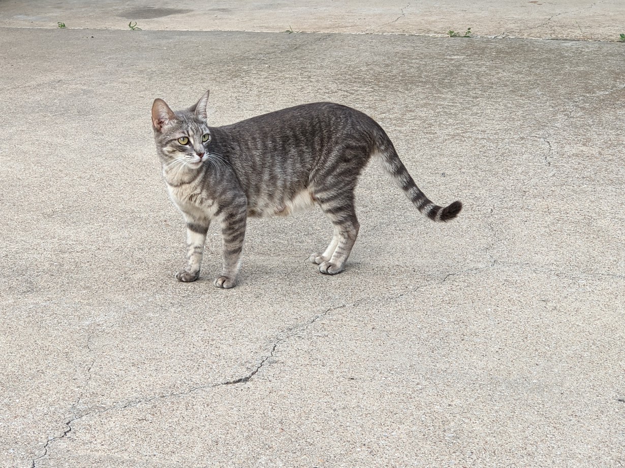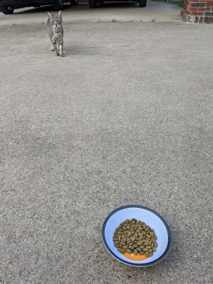 She’s not feral. She allows humans to get close and lingers curiously nearby after eating. With a little patience, it won’t take long for her to trust people. I’m pretty sure, when her babies are old enough, she will want to bring them somewhere safe. I want to be that safe house.