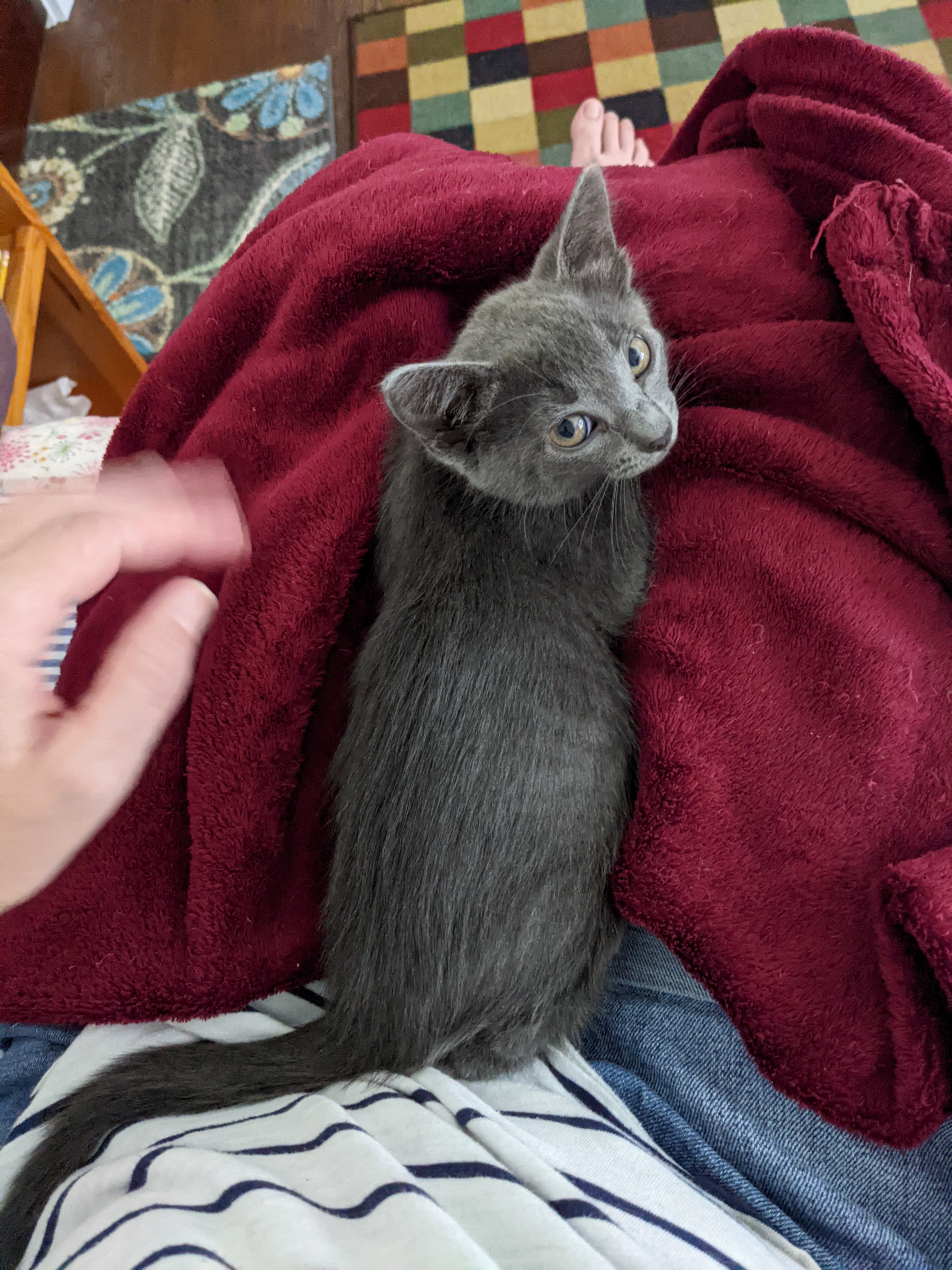 Now, eight days from that exciting Thursday morning, life is finally starting to go back to normal. Hopper, Steve, and Eddie have all gone to their forever homes, and the three kittens who remain have stopped crying at night and using the litterbox as a playpen. I’m finally getting some writing time and have even taken a shower today. Woo hoo!