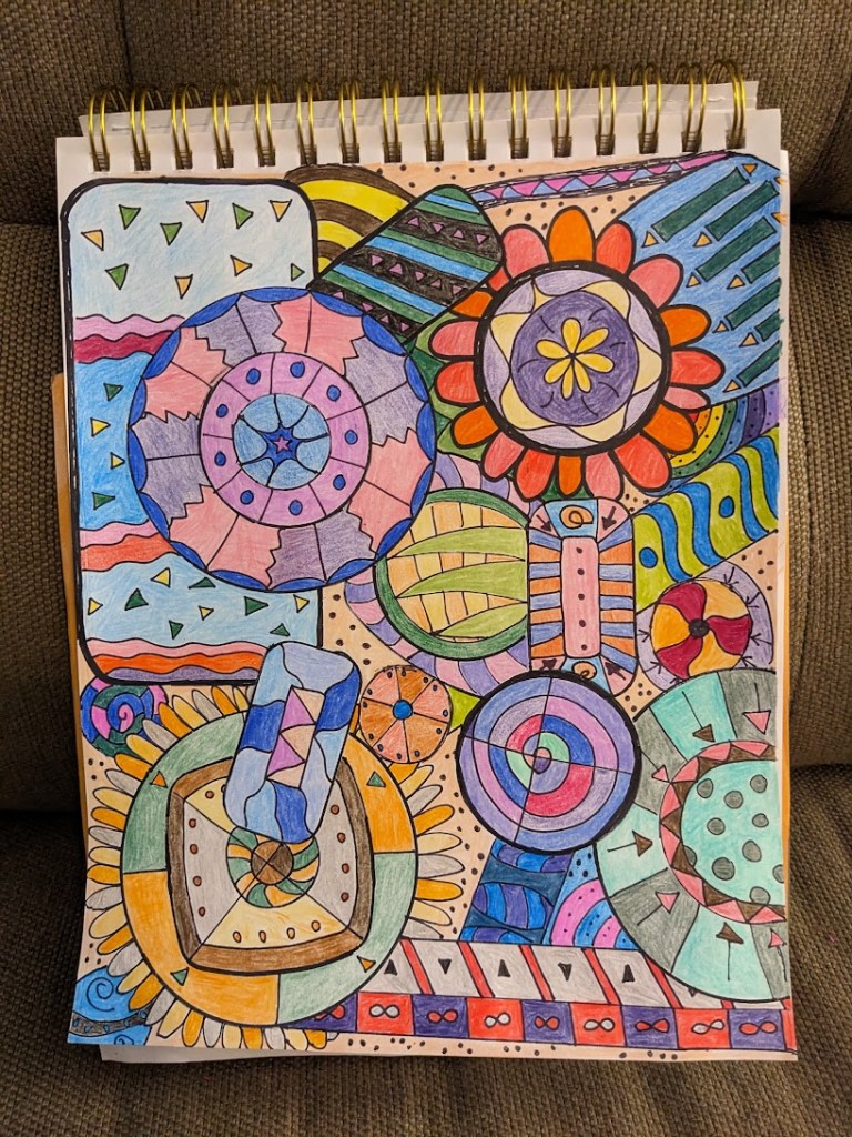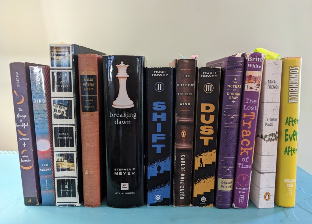 First, I spent some time drawing and coloring. Even though it makes my hand hurt, I love sitting and coloring a pattern for hours while listening to an audio book or favorite TV series. My almost-one-year-old kitten helped add to the messiness by stealing my pencil sharpener, then knocking over my jar of colored pencils and batting the jar around the floor. A couple of days later, I traded my colored pencils and paper for acrylic paints and a canvas. This time, I locked the cat out of the room, but I still made plenty of mess myself. When that project was done, I looked around and decided my books were much too tidy.