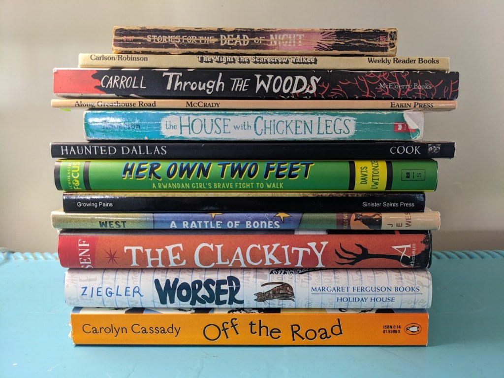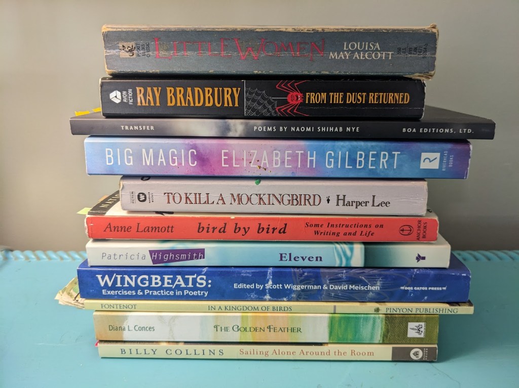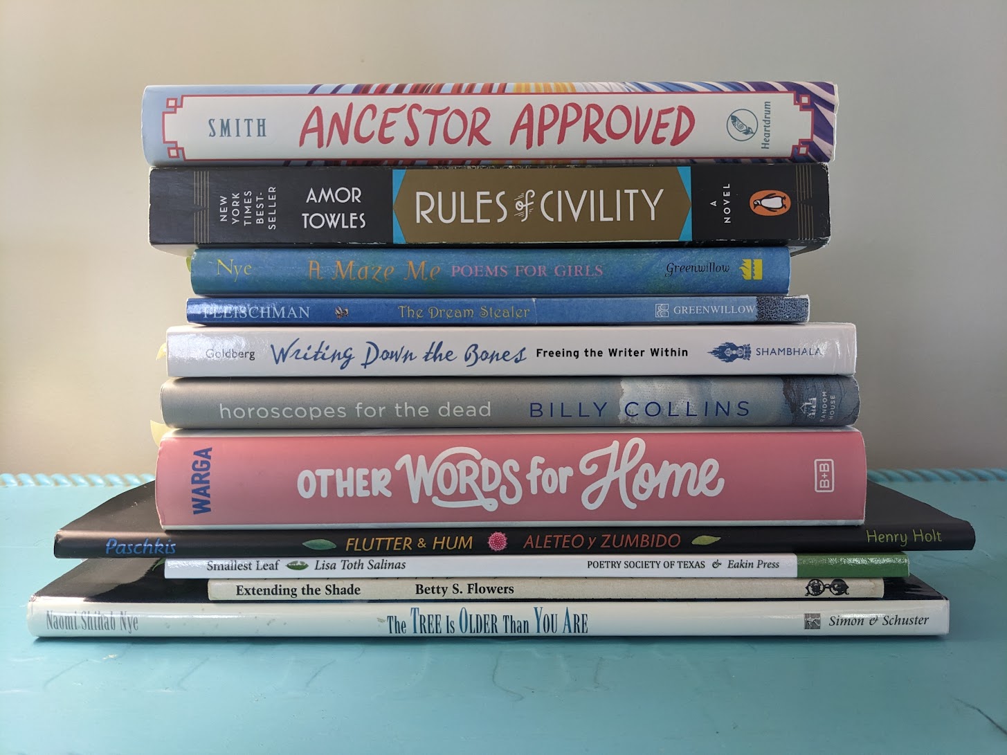 It had been a few years since I spent a night making book title poems. I’ve gotten a lot of new books since then and have said goodbye to many others. I could tell poems awaited in the new assortment. I started pulling books off shelves. Books and books and books. Piles and piles and piles. I started with the ones I’ve recently acquired, the ones who haven’t had the fun of playing the found poetry game before, books like The Broken Lands by Kate Milford and The Space Between You and Me by Ashley B. Davis and Tomorrow, and Tomorrow, and Tomorrow by Gabrielle Zevin. I wanted to use as many of the new ones as possible, but I had to pull some of my old standbys too. I mean, Ray Bradbury’s Something Wicked This Way Comes and Billy Collins’s Sailing Alone Around the Room are just too perfect for making found poems. When I had a big enough mess, I started seeing what fit together. Here’s what I came up with…