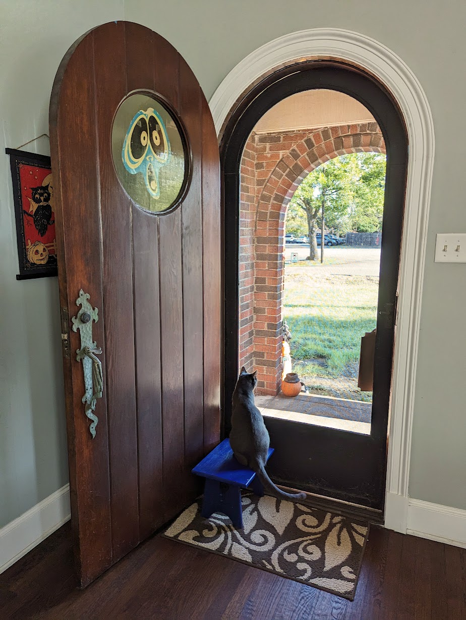 This is not a tease, not just another single day’s respite. I feel a shift. The wind liberated leaves from trees and detached decorations from my yard, but that’s not all it freed. The cold front loosened summer’s hold on us. We’re all coming unstuck.