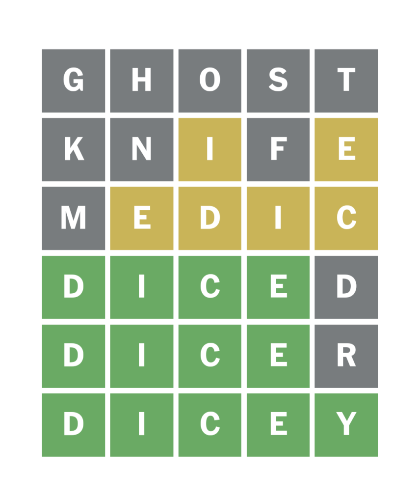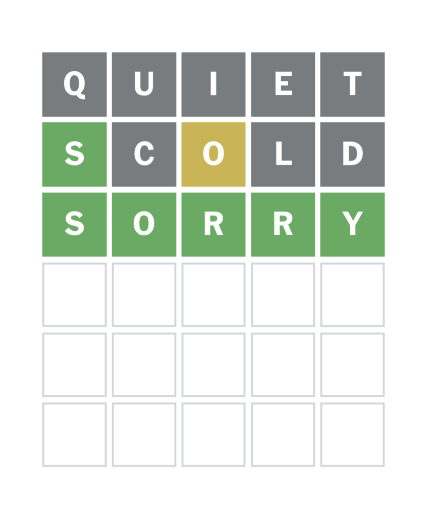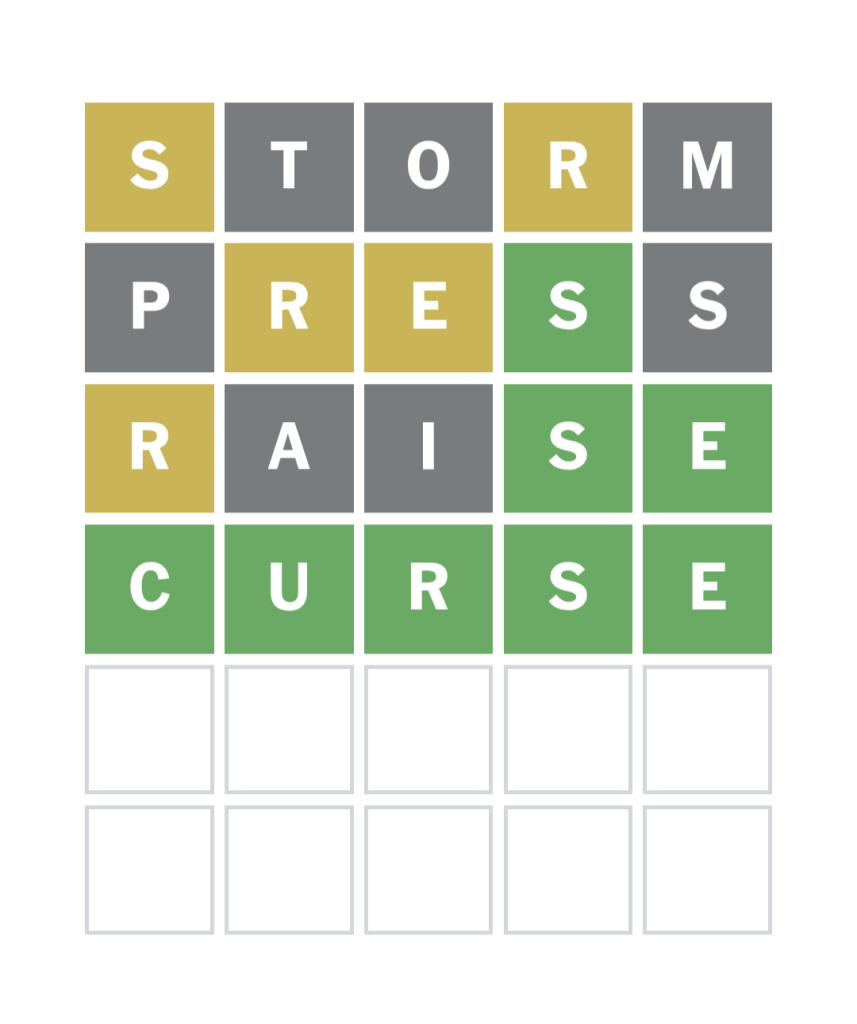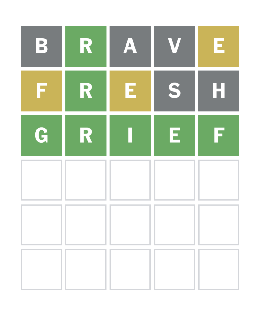 I lost at Wordle yesterday. I was mad at myself because on the fourth line, I accidentally used a yellow letter in the same place I’d used it in the previous line, which is what happens when you attempt word games before you’ve had coffee. On the sixth line, I convinced myself I’d figured out the answer and felt brief relief until I realized my mistake. The word was wheat, not cheat, but I felt cheated anyway.