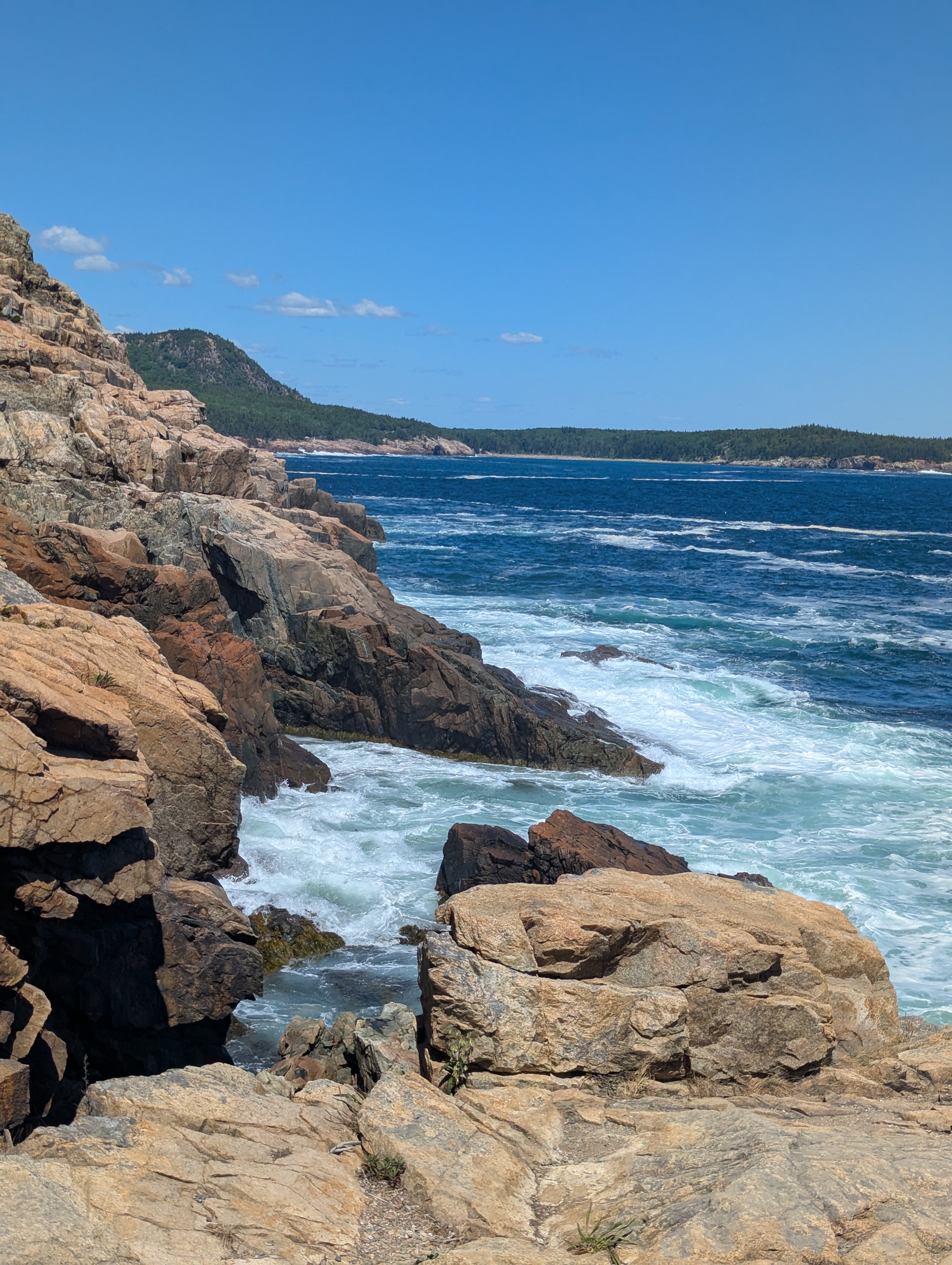 Last week, Hubby and I spent a few days in on Mount Desert Island in Maine. [Fun Fact: They pronounce it “dessert” like the cake, instead of “desert” like the dry climate, which really bothered Hubby. I suggested maybe they were pronouncing it like the verb, as in to “desert” someone, but he was not happy with that either.] It was a mostly beautiful vacation. We hiked in Acadia National Park, stared at gorgeous views, went on a ghost tour, ate lobster—they pronounced it “lobstah” but Hubby was fine with that—and enjoyed glorious weather with sunny skies during the day and starry skies at night and a temperature that was perfect for both coffee and ice cream (but not at the same time). It really was a mostly very beautiful vacation.