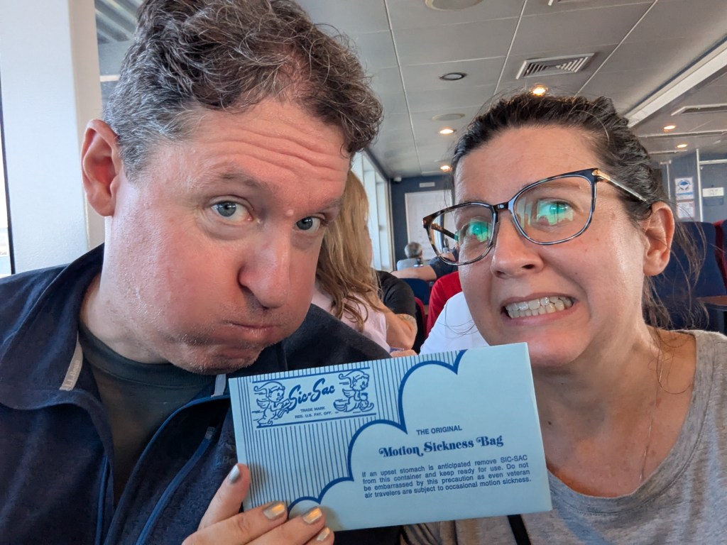 - When you are getting on the whale watching boat, and a knowledgeable, seafaring person is standing at the front making announcement after announcement warning passengers that the seas will be rough and anyone who struggles with motion sickness should probably reconsider going on this particular boat tour, you should listen to her.