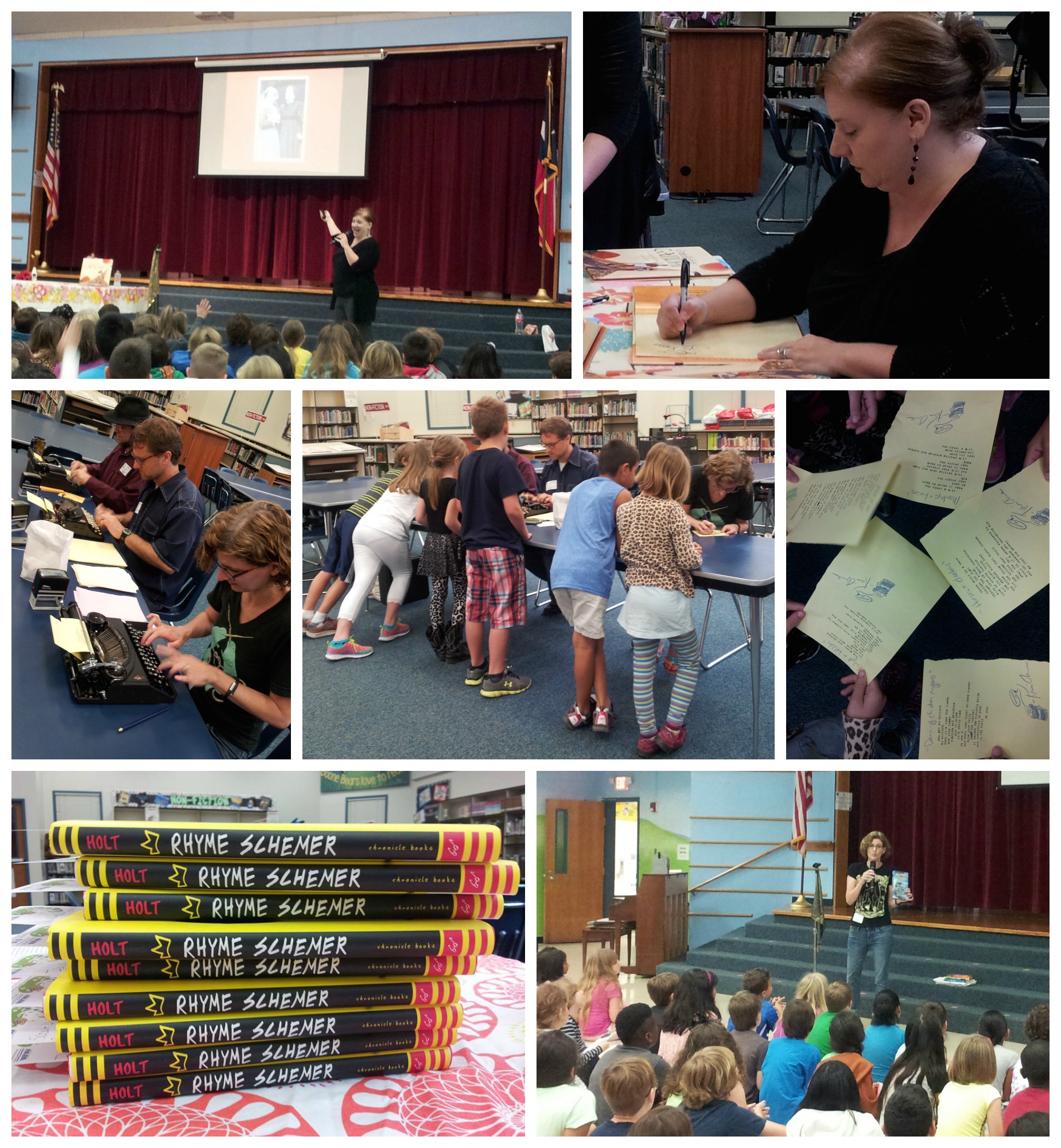This year we hosted two amazing authors – Bethany Hegedus, author of Grandfather Gandhi, and K. A. Holt, author of Rhyme Schemer – and also got a visit from Typewriter Rodeo. The kids had a blast.