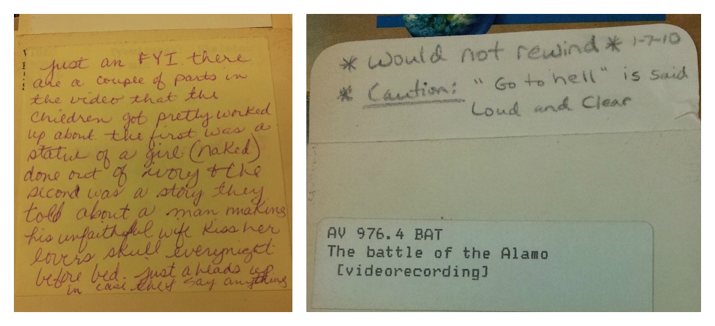 * Notes from substitutes regarding questionable content in videos.